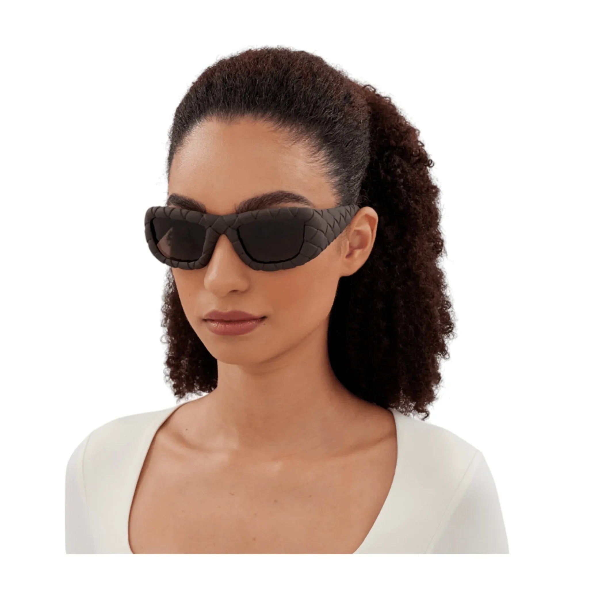 Montatura rettangolare avvolgente, interamente iniettata. Motivo Intrecciato all-over.
