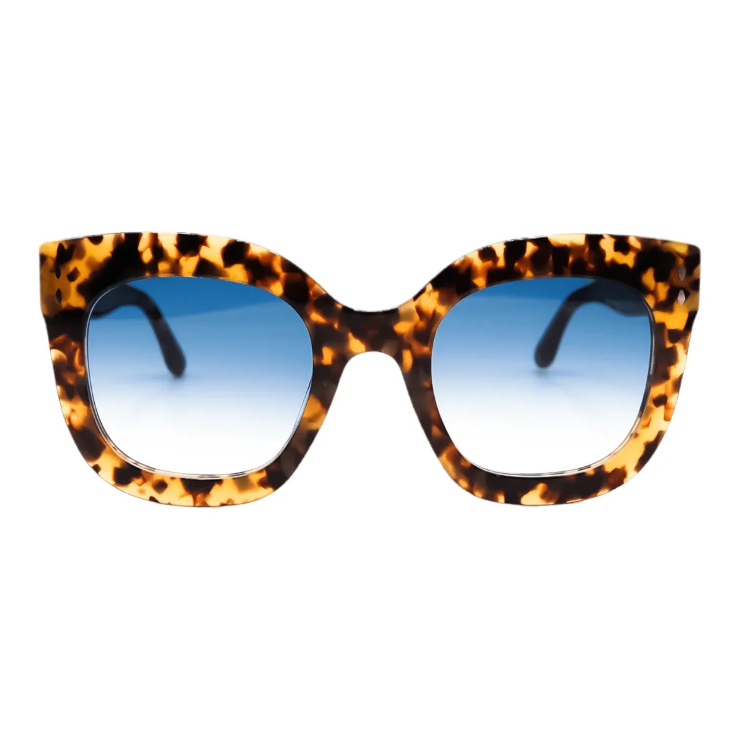 Occhiali da sole in acetato da donna color Havana con lenti sfumate celesti