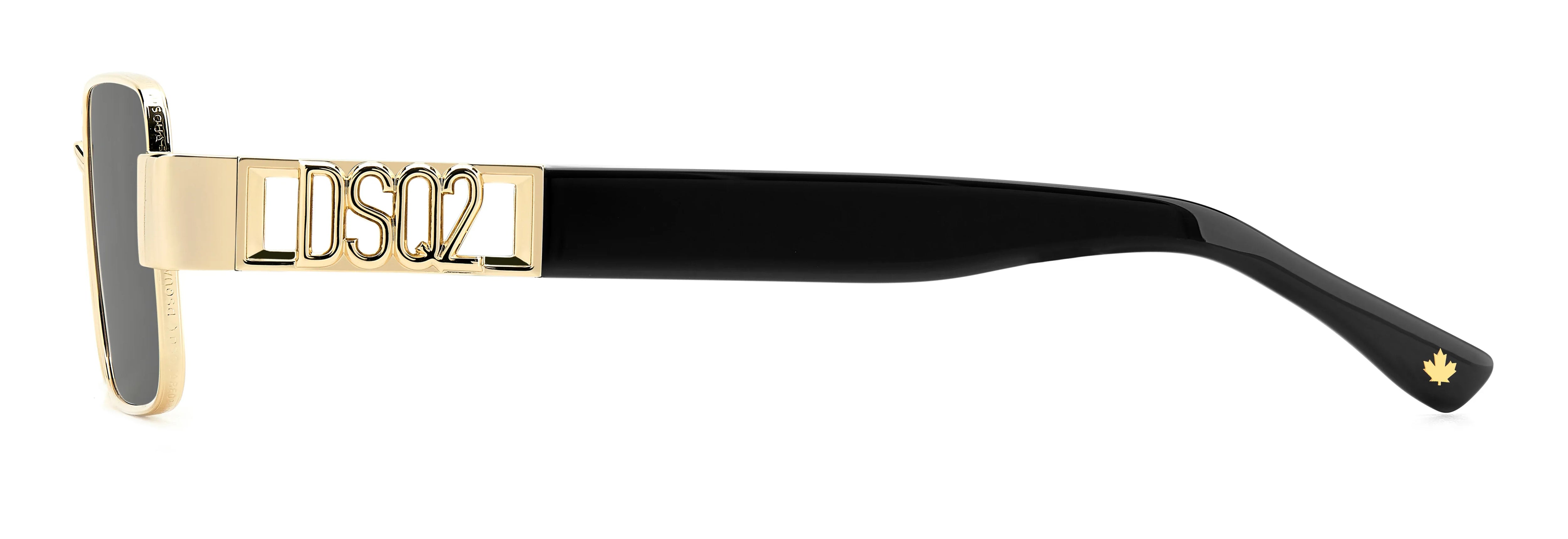 Occhiali da sole con montatura in metallo e forma rettangolare, interpretata in puro stile DSQUARED2. Numerosi gli omaggi al brand, a partire dal logo DSQ2 traforato sulle aste. Meno evidente ma non meno preziosa l’incisione che decora i profili del frontale, con il logo DSQUARED2 ripetuto. Il modello arriva in diverse varianti colore, tra cui quella con profilo nero a contrasto.