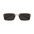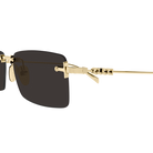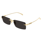 Modelli glasant in metallo caratterizzati da un logo con scritta traforato sulle aste. Forma rettangolare. Lettering Logo cut-out. Palette maschile con finiture galvaniche oro.