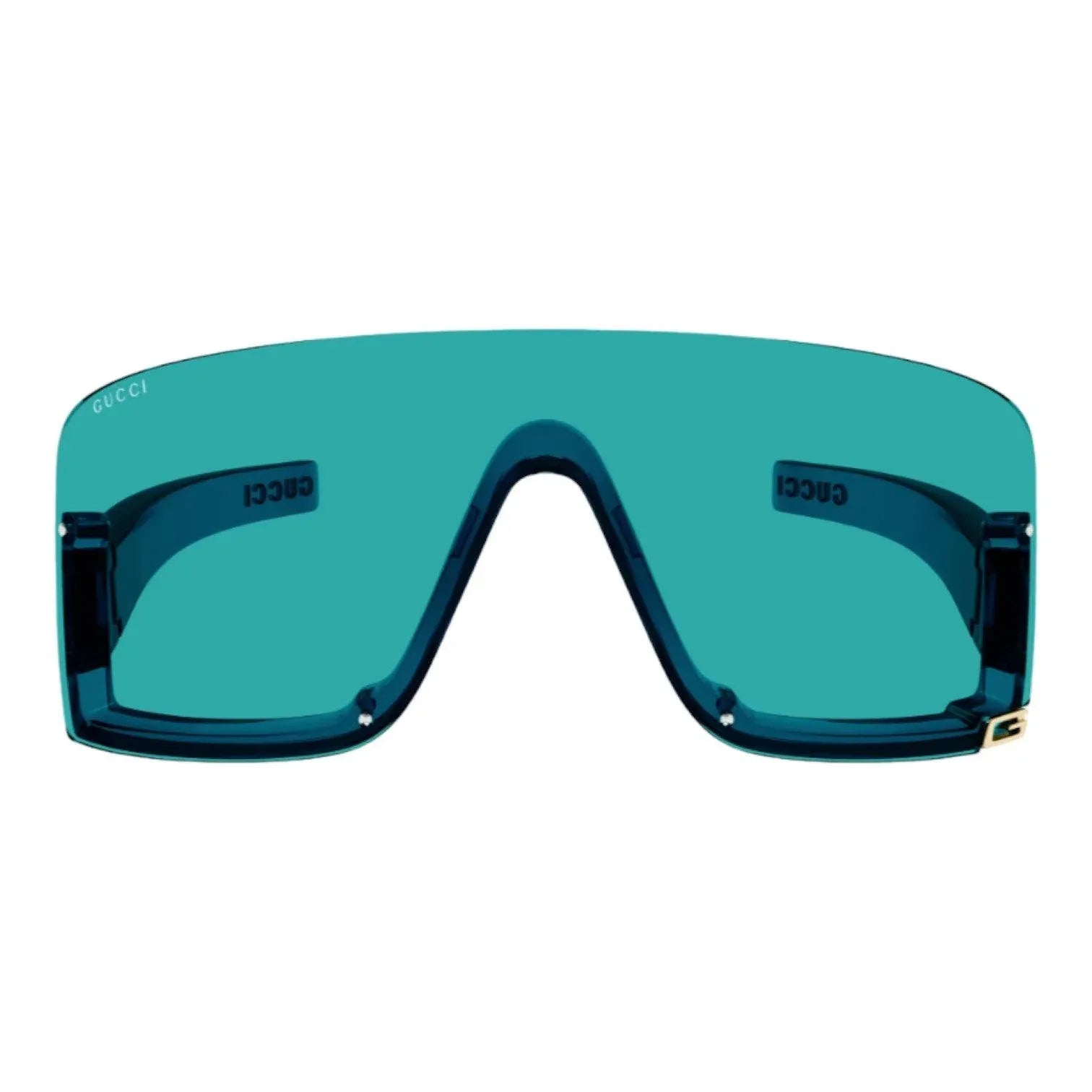 Aste dritte in plastica fissate alla parte inferiore del frontale. Logo con scritta Gucci in rilievo sui terminali. Logo Gucci traforato in oro sull’angolo in basso a sinistra del frontale.