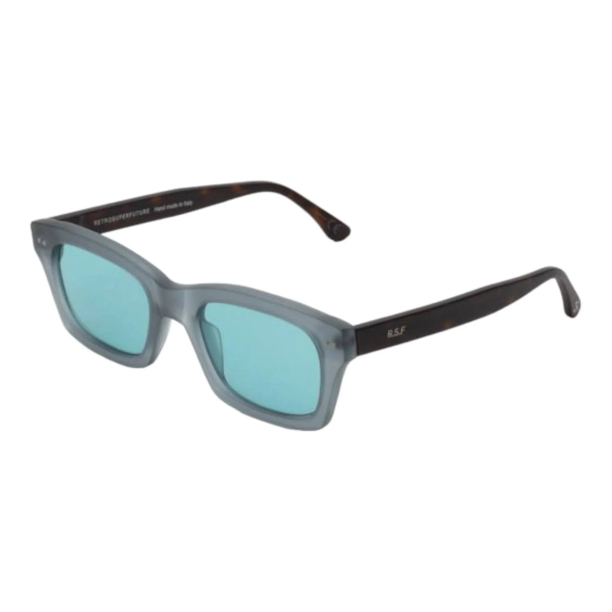 Retrosuperfuture - KZK Occhiali da sole unisex in acetato semi trasparente con montatura grigio scuro e lenti celesti